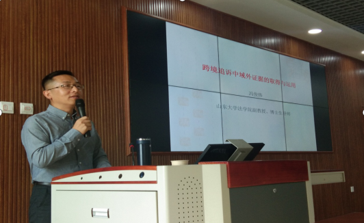 9月26日,山东大学法学院博士生导师冯俊伟副教授以《跨境追诉中域外证据的取得与运用》为题,在西图730法律诊所实验室为法学院研究生带了一场精彩的学术讲座。法学院副院长张凌竹主持本次讲座,吉林大学法学院博士生导师谢登科副教授、长春理工大学法学院任继鸿副教授、2018级、2019级法学研究生到场共同聆听专家讲座。